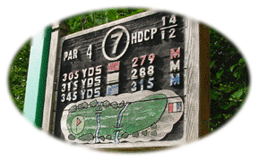 hazard that stretches across the full width of this fairway. A lay-up before the hazard could be the smart play to achieve